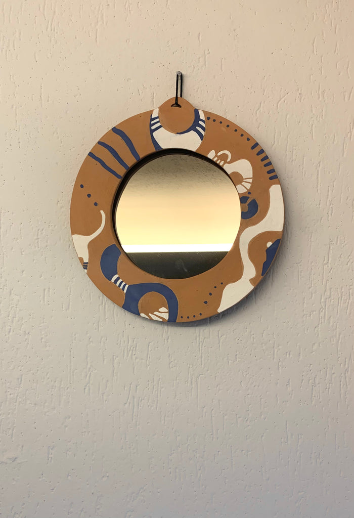 Handmade ceramic mirror, hand painted with my iconic design from "Unconscious Rhythm" collection.